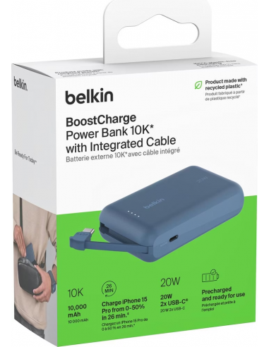 Batterie externe BELKIN 10 000 mAh avec câble intégré – BoostCharge – Bleu