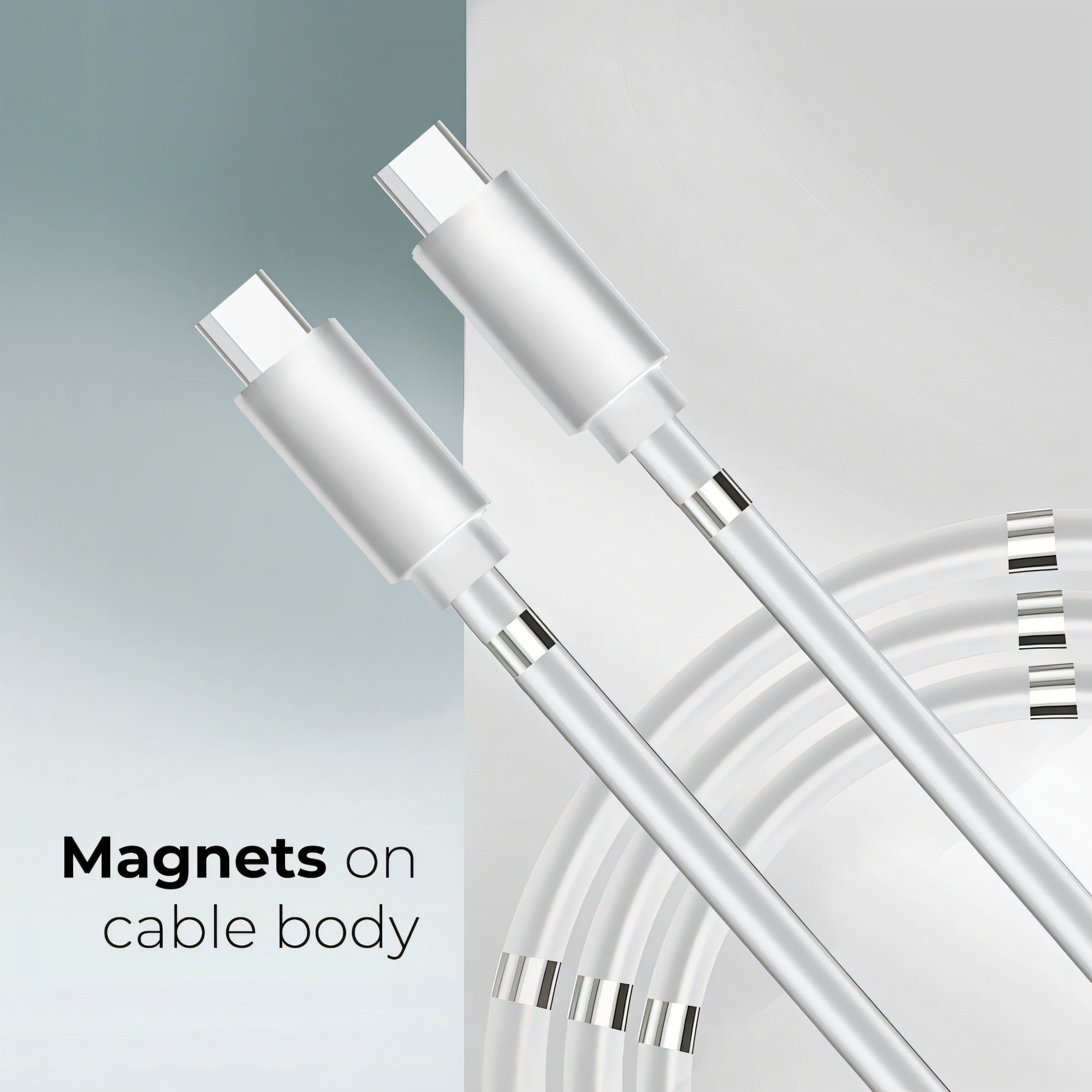 Câble Type C - Type C - Fast charge -Power Delivery enroulement magnetique 3A C676 blanc 1m