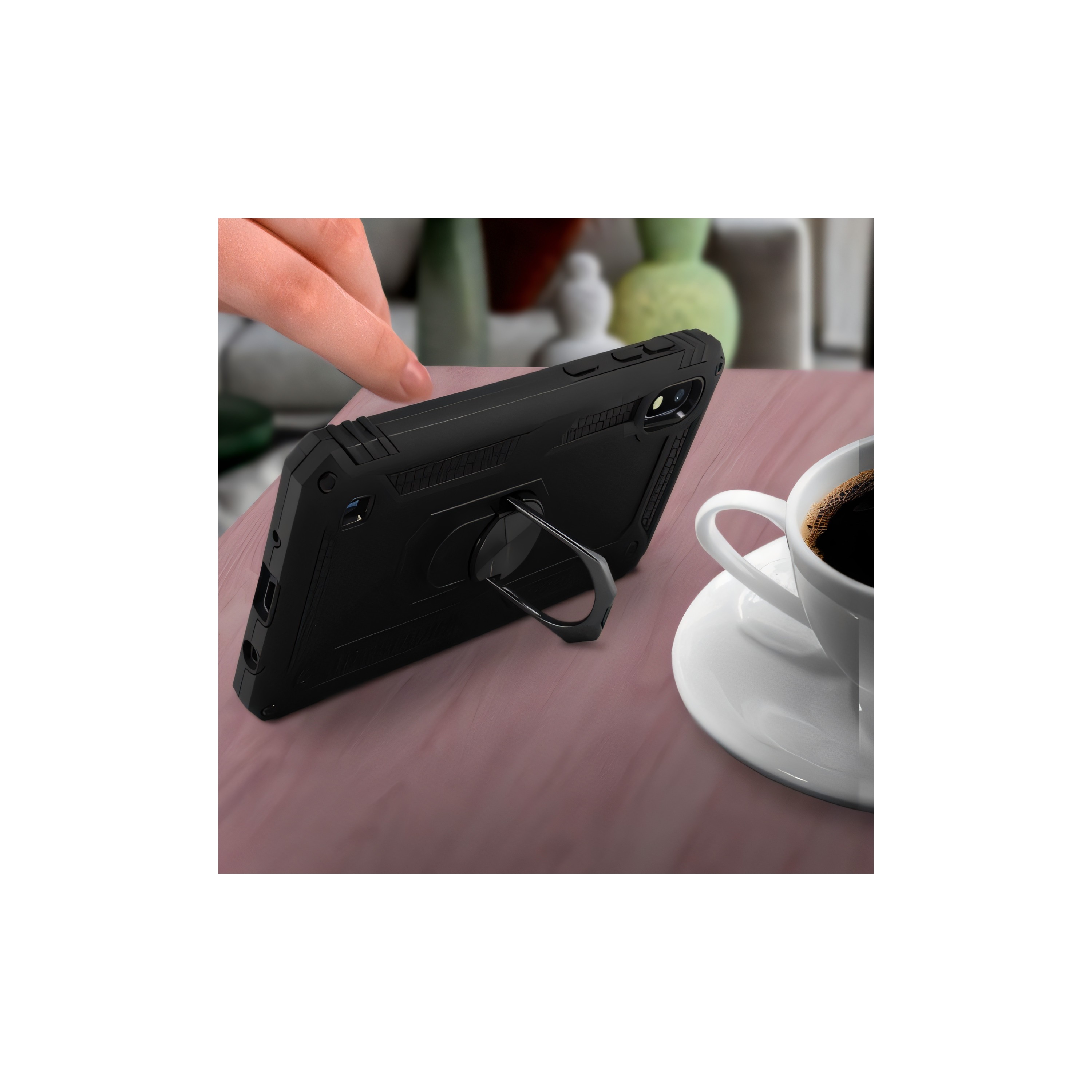 L'anneau Xssive intégré à la coque offre une fonctionnalité supplémentaire en vous permettant de tenir fermement votre téléphone d'une seule main, évitant tout risque de chute accidentelle. Cet anneau peut également être utilisé comme support pour regarder des vidéos en mode mains libres, offrant ainsi une expérience pratique et agréable.