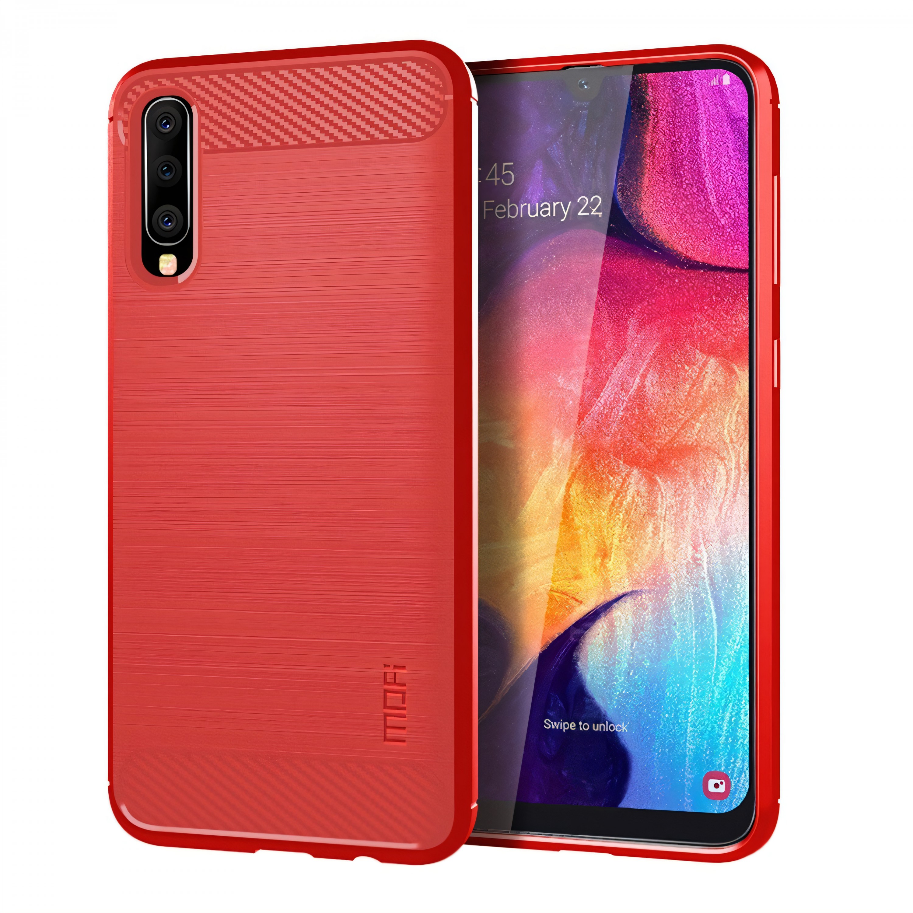 N'attendez plus, protégez votre smartphone avec style grâce à la coque silicone Samsung Galaxy A50 Style fibre de carbone MOFI Rouge de la boutique All4iphone !