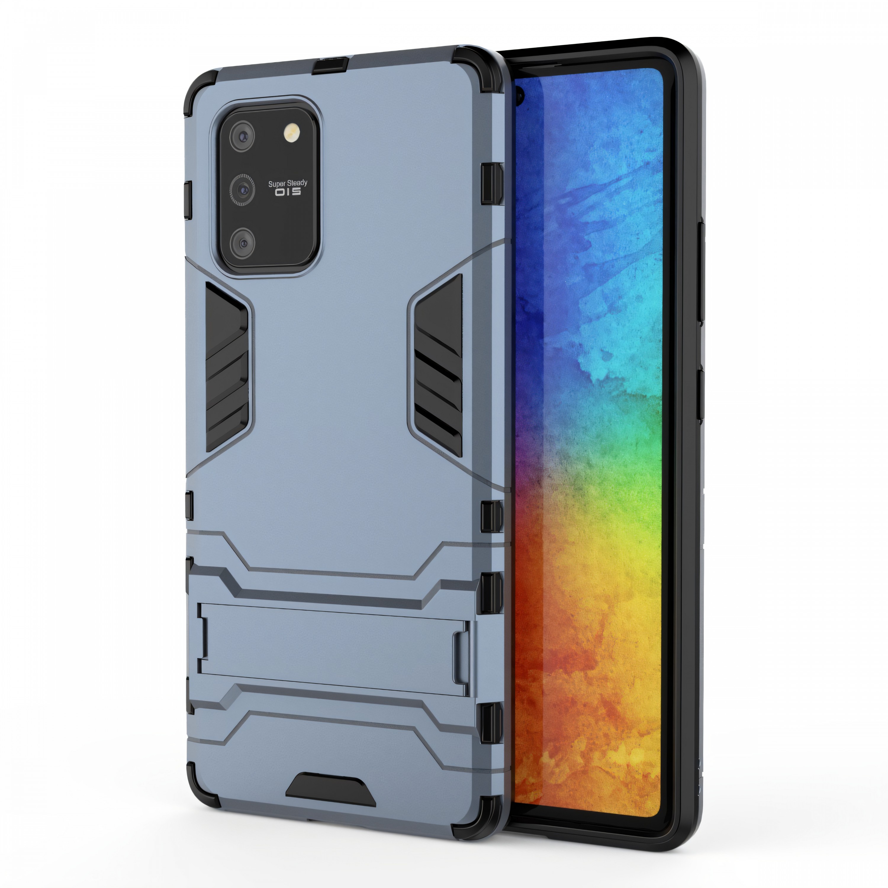 Le contour de la coque antichoc Galaxy A91 et Galaxy S10 lite bleu foncé est légèrement relevé pour éviter que votre écran ne touche le sol en cas de rencontre fortuite avec celui-ci.