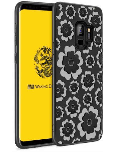 Coque silicone Galaxy S9 Fleurs 3D Noir
