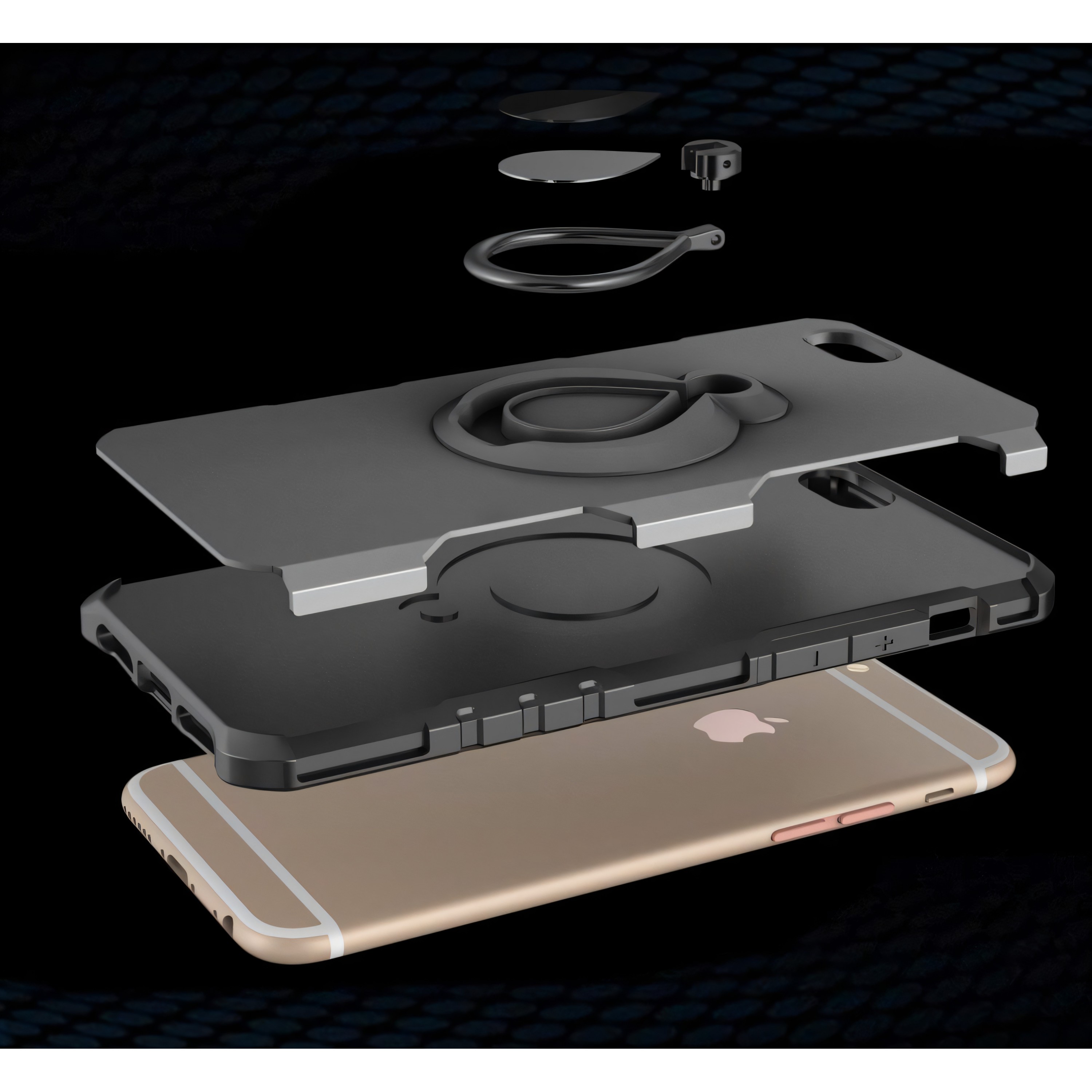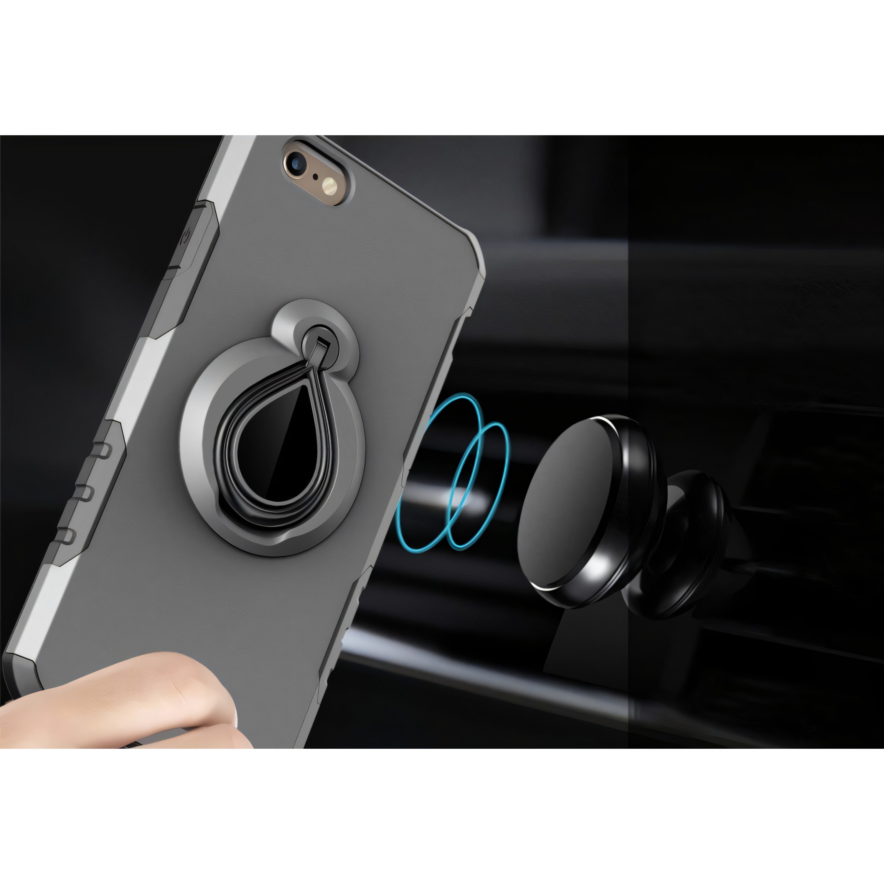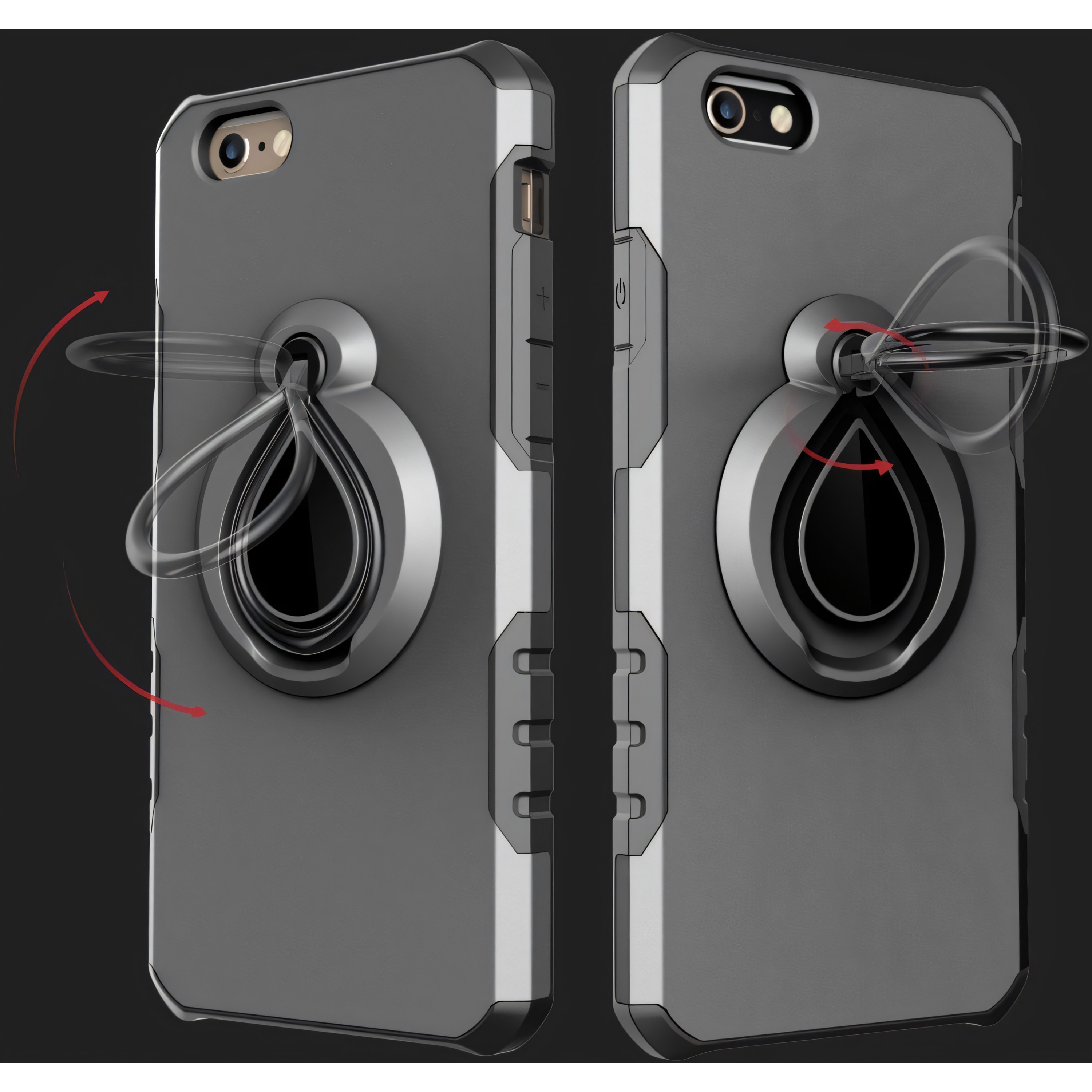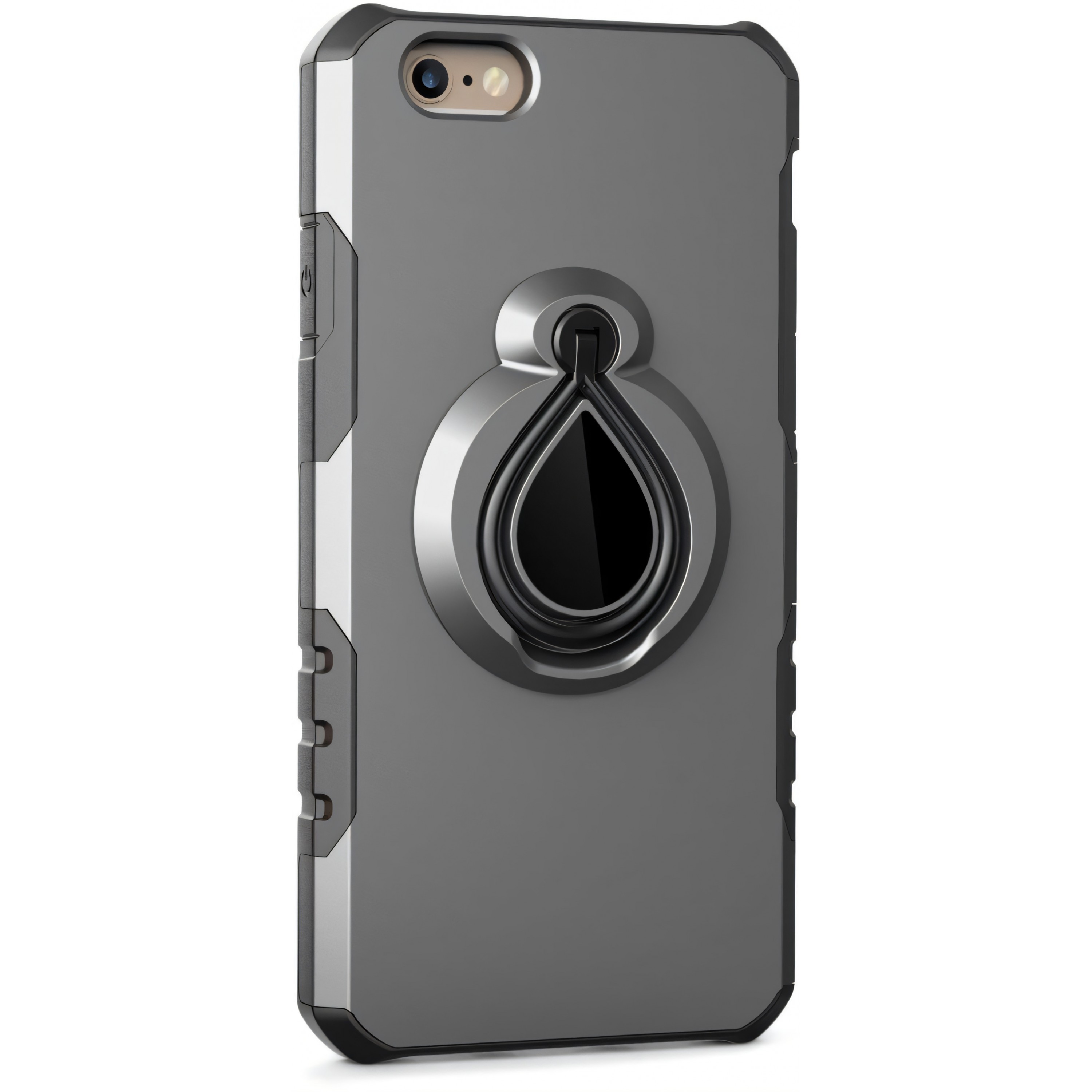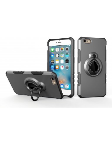 Coque iPhone 6 6s silicone et Metal avec anneau Gris