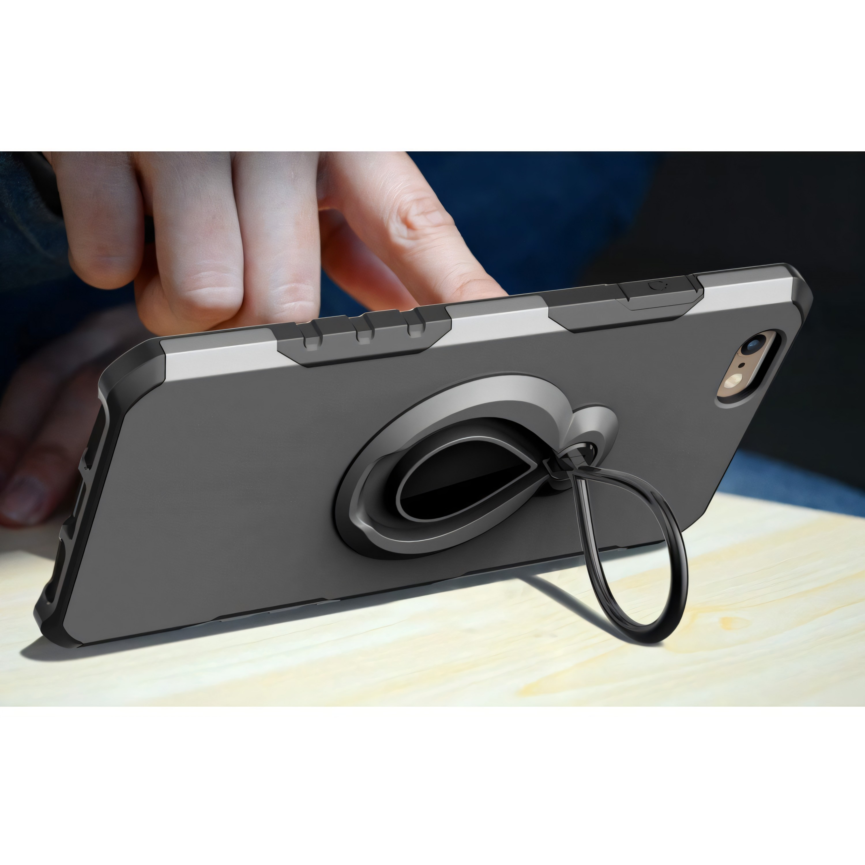 Ne laissez pas votre iPhone 6 ou 6s sans protection, optez pour cette coque en silicone et métal avec anneau Gris et donnez-lui un look fantastique tout en le protégeant efficacement. N'attendez plus, commandez dès maintenant cette coque fantastique et profitez de votre iPhone en toute tranquillité.