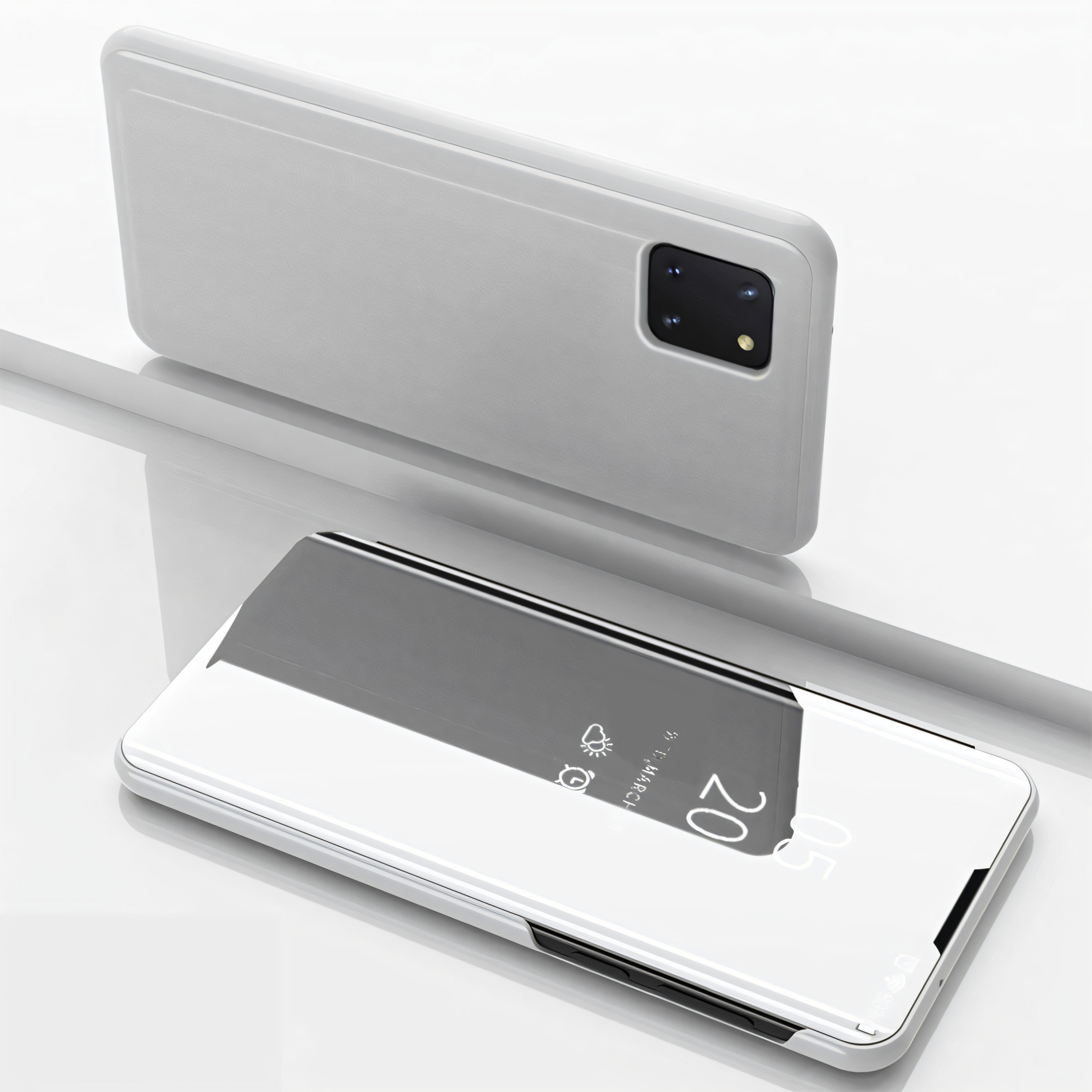 Etui Galaxy Note 10 lite et Galaxy A81 avec fenêtre mirroir Design - Argent