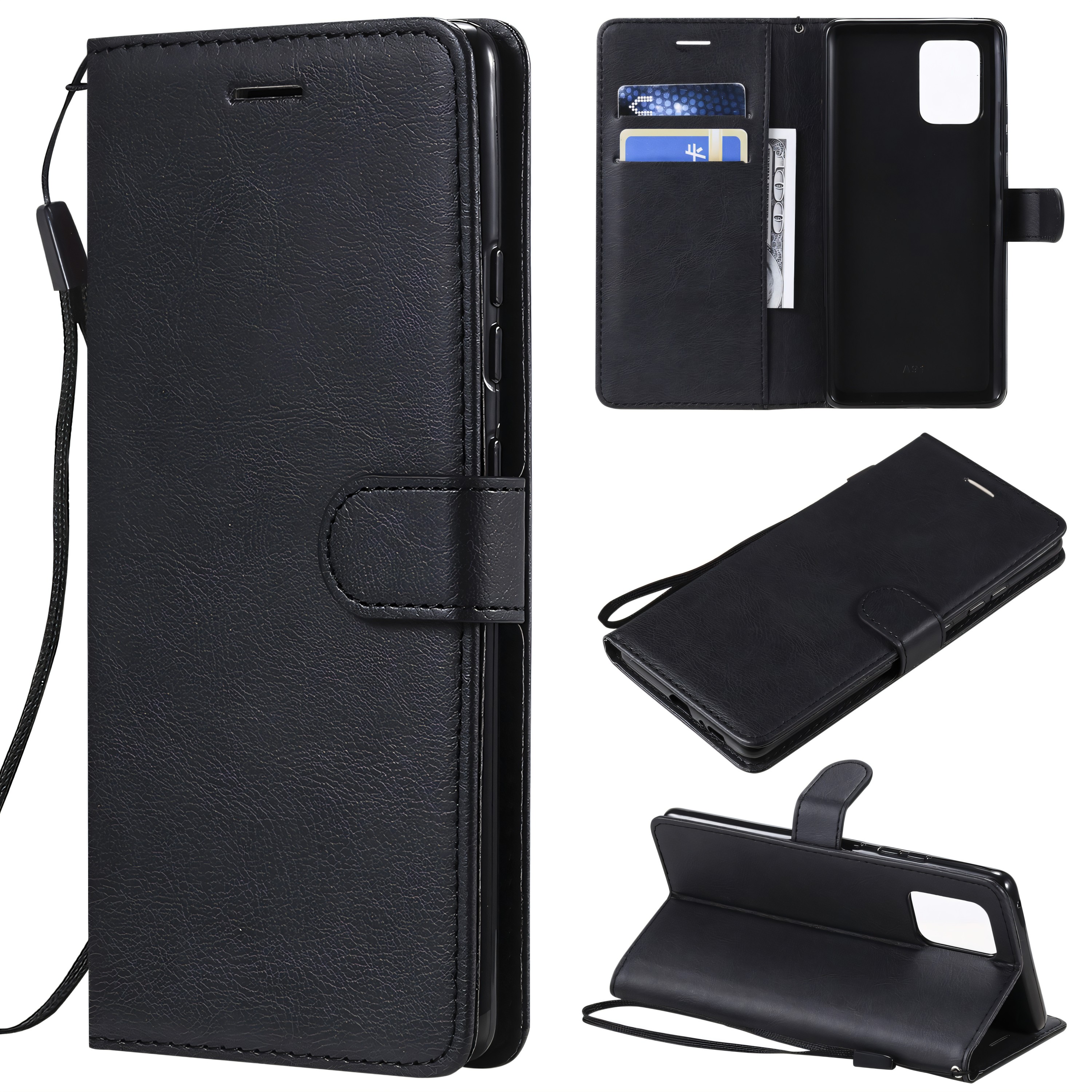 Etui portefeuille Galaxy A91 et Galaxy S10 Lite avec dragonne Noir