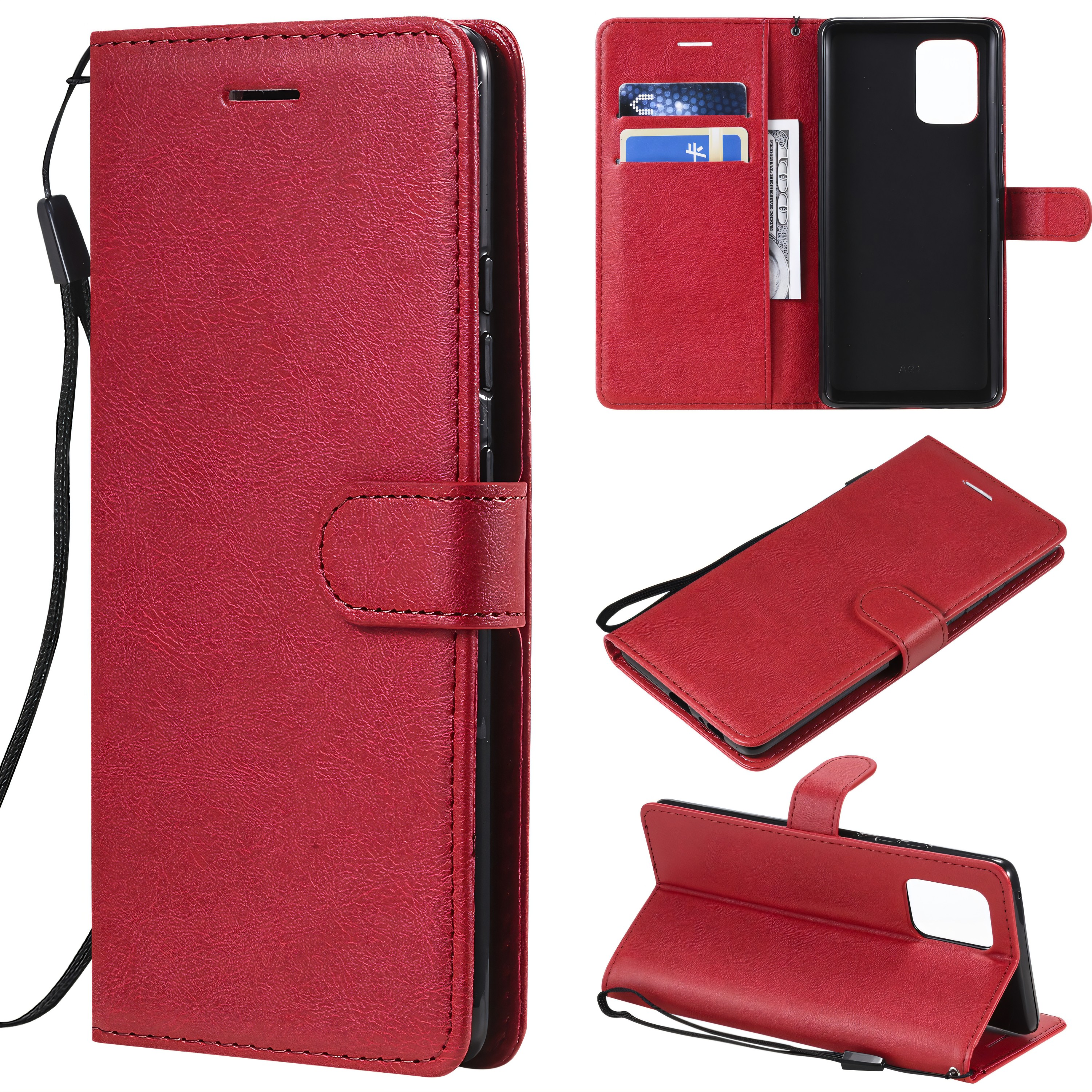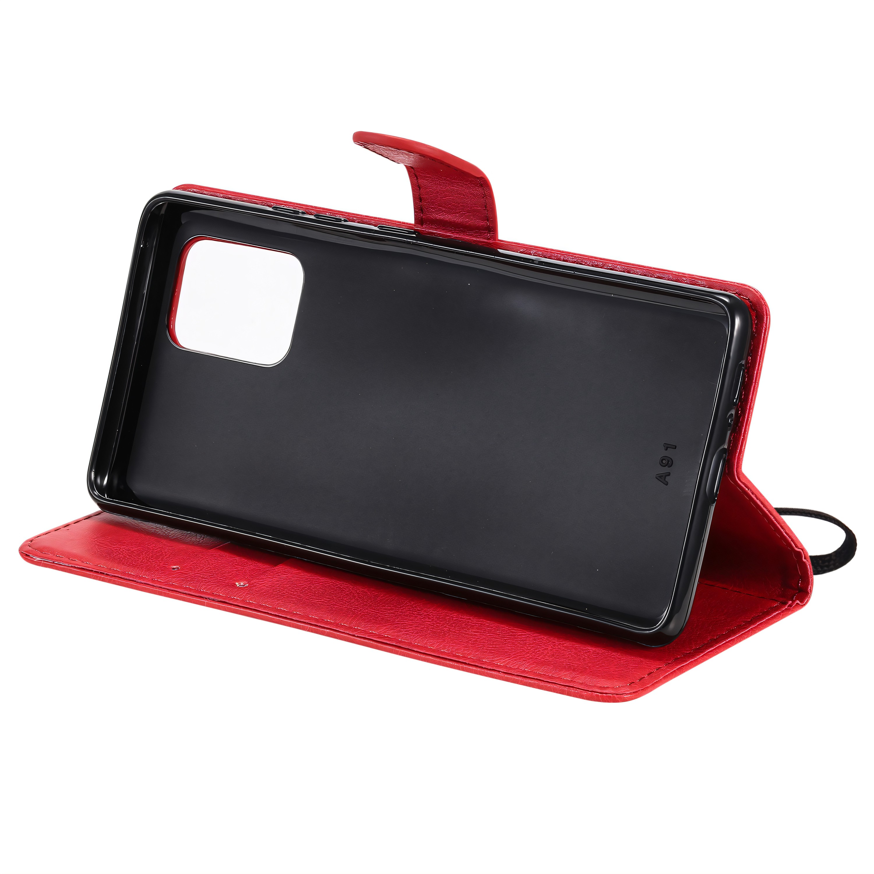 Etui portefeuille Galaxy A91 et Galaxy S10 Lite avec dragonne Rouge