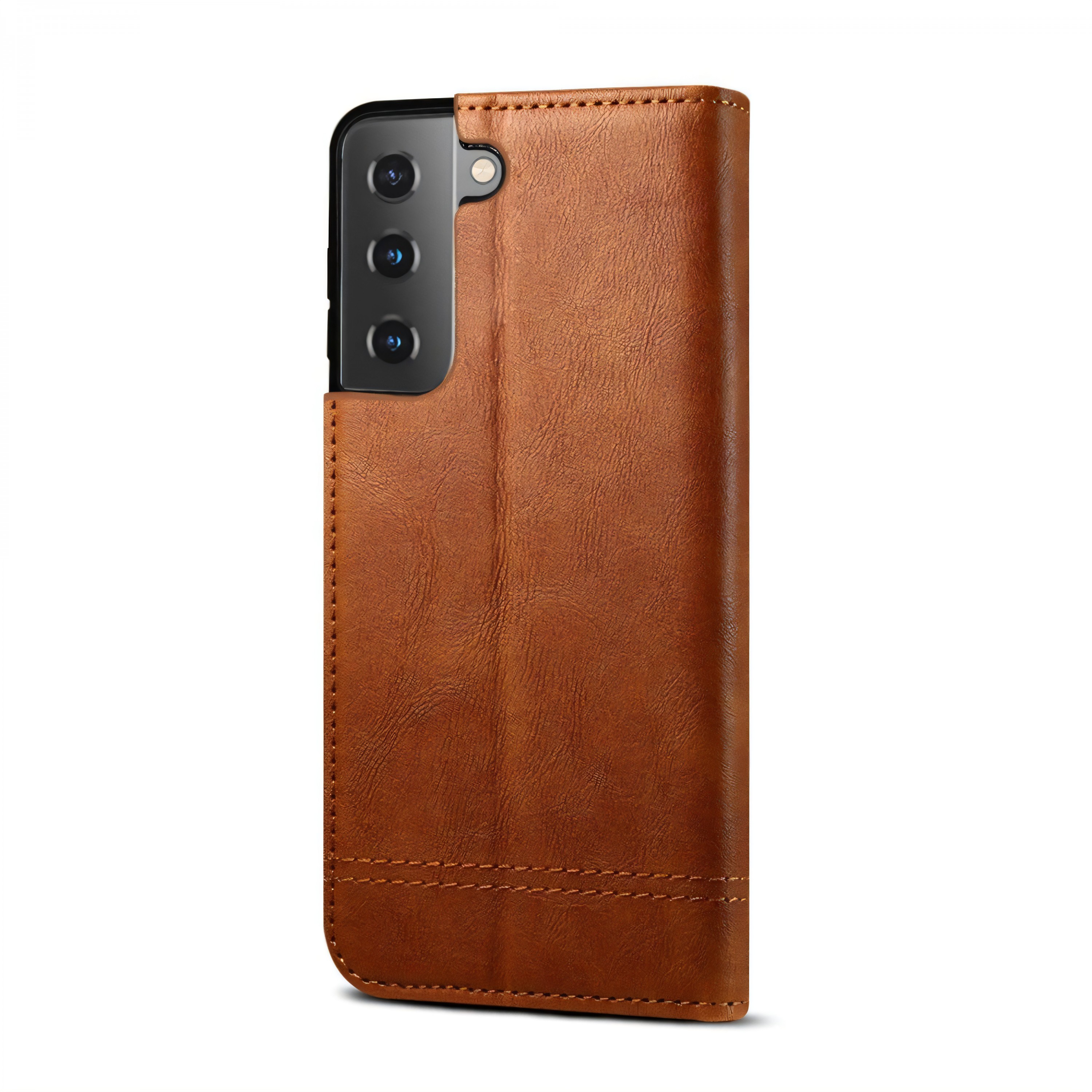 Etui portefeuille Galaxy S21 avec rangement carte et coque silicone intégrée - Marron