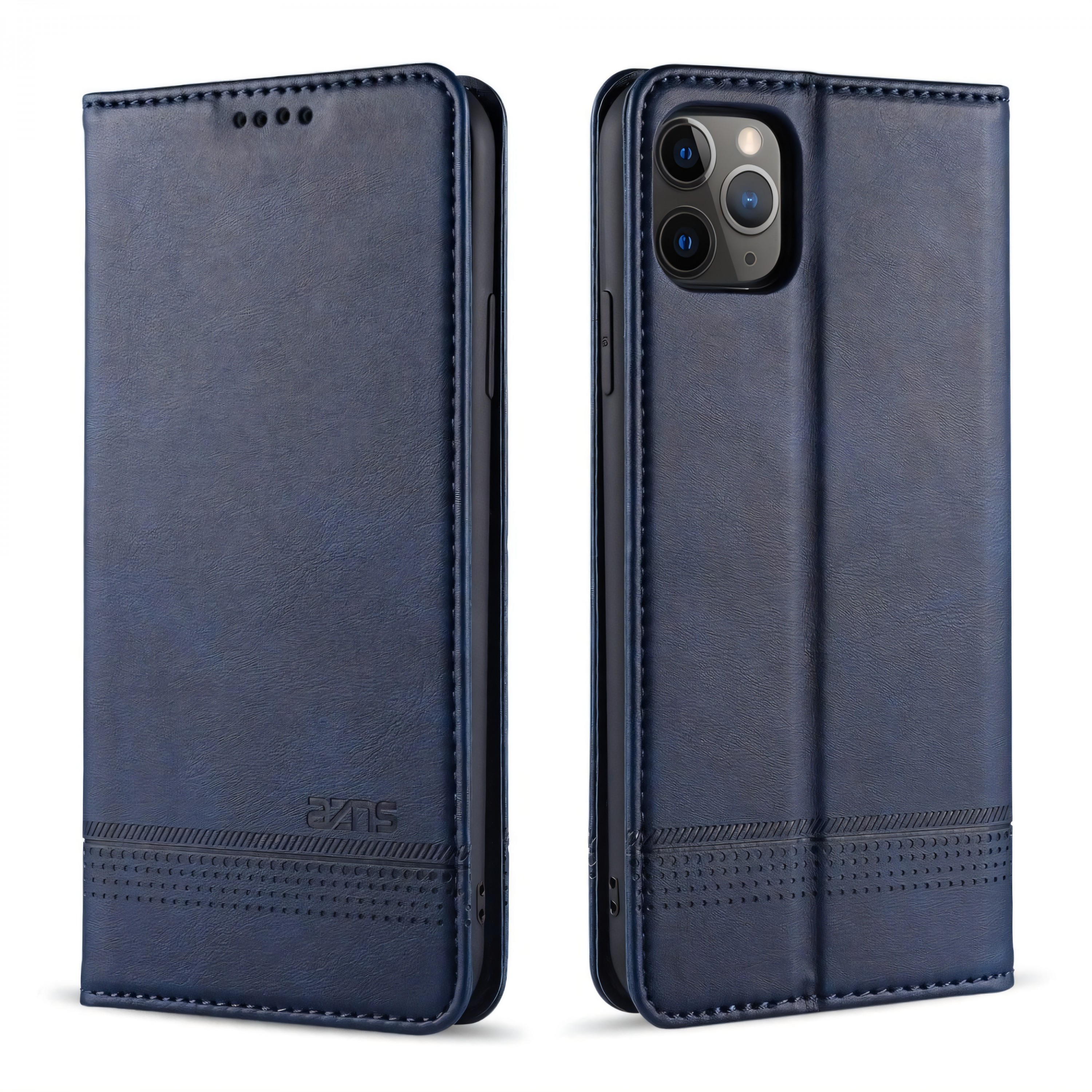 Etui portefeuille iPhone 12 pro et 12 Simili Cuir AZNS - Bleu foncé