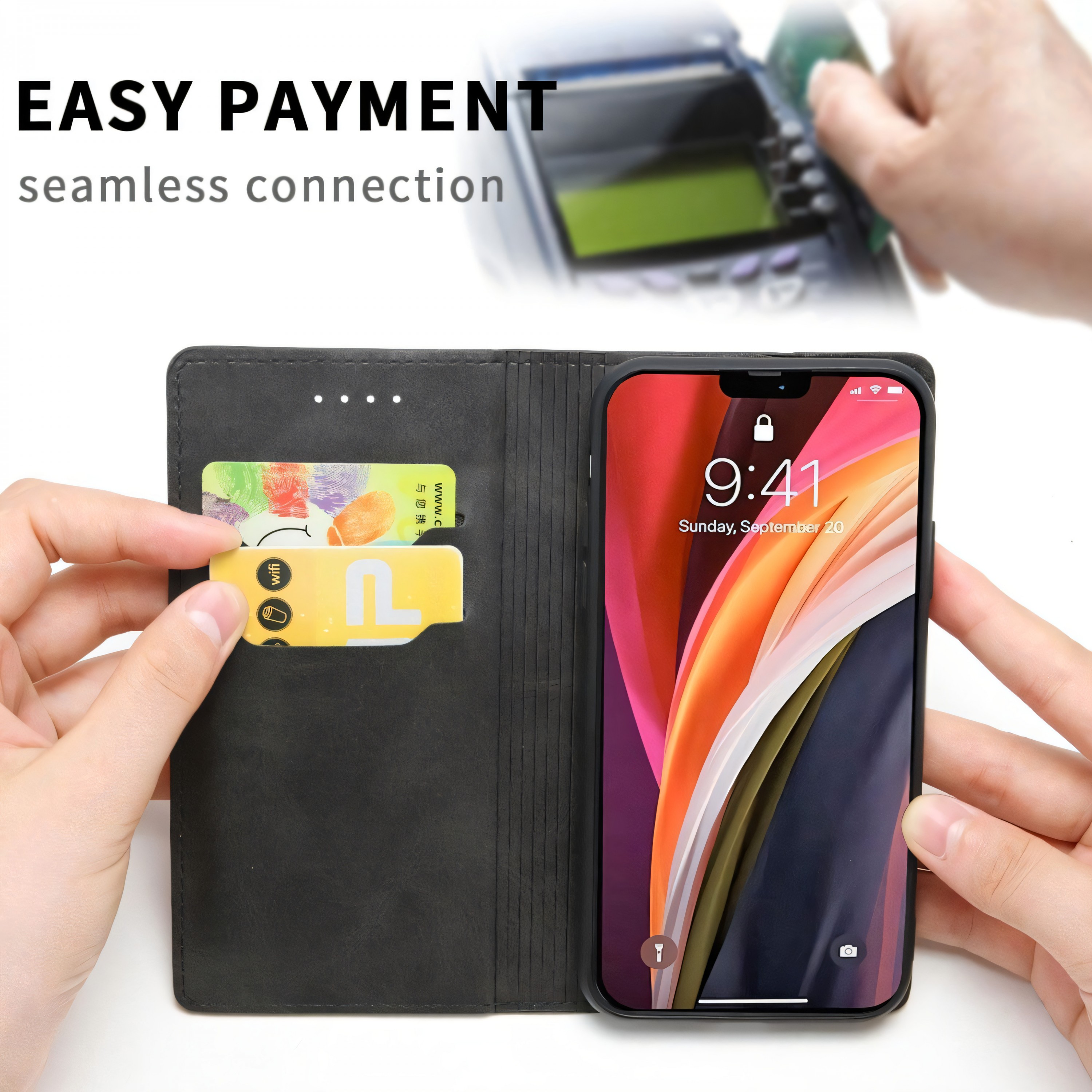 Avec sa fermeture magnétique, votre iPhone reste bien en place dans l'étui, évitant ainsi les risques de chute ou de rayures accidentelles. De plus, cet étui est doté d'un espace de rangement pratique pour vos cartes, vous permettant ainsi de voyager léger en combinant portefeuille et téléphone.