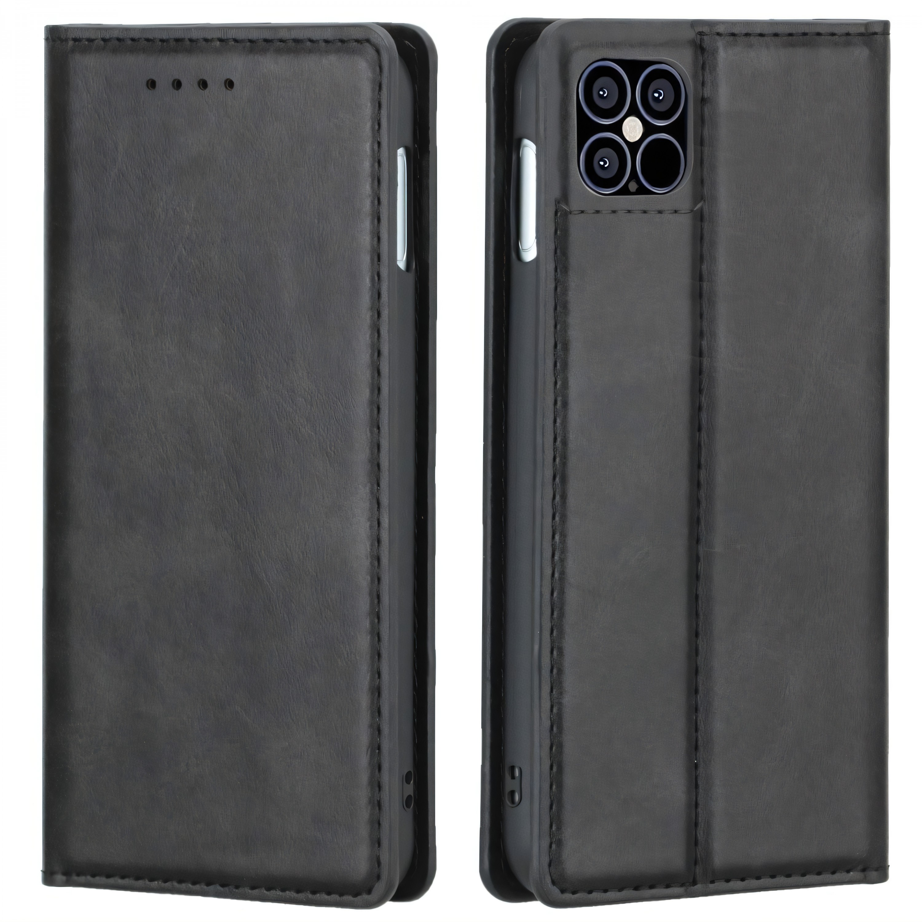 Etui iPhone 12 Pro Max Simili cuir avec fermeture magnetique - Rangement carte - Noir