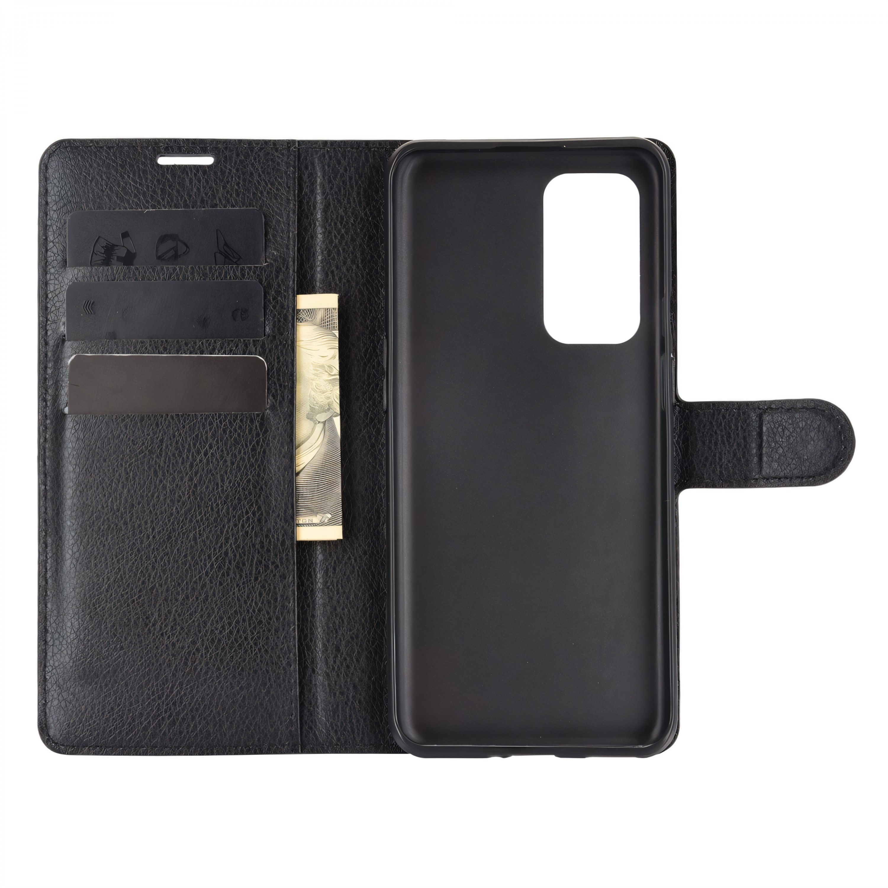 Etui portefeuille OnePlus 9 Litchi Noir