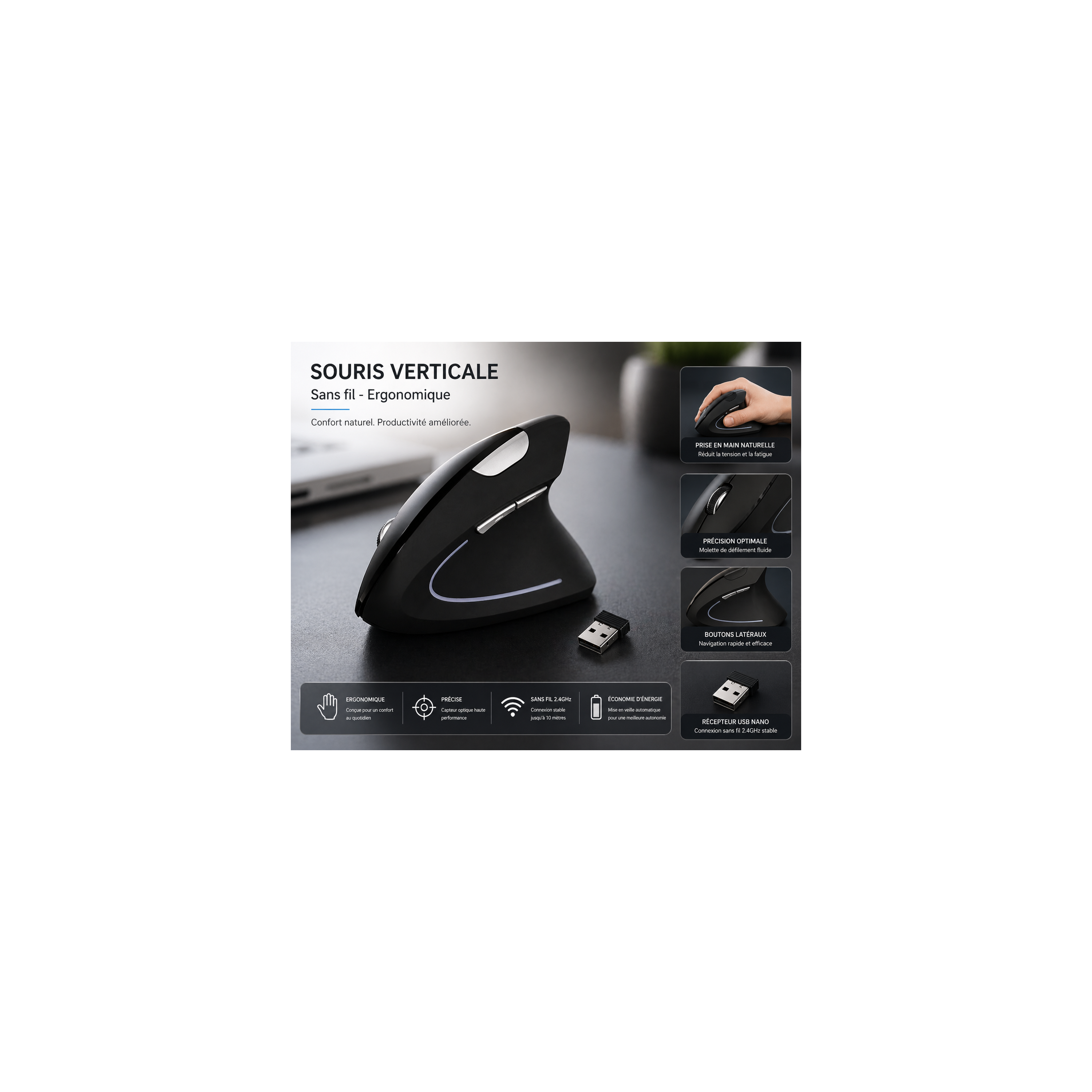 La souris ReBELTEC Optical BT est la solution parfaite pour ceux qui passent de nombreuses heures devant un ordinateur et souhaitent prévenir les troubles musculosquelettiques liés à une mauvaise posture de la main.
